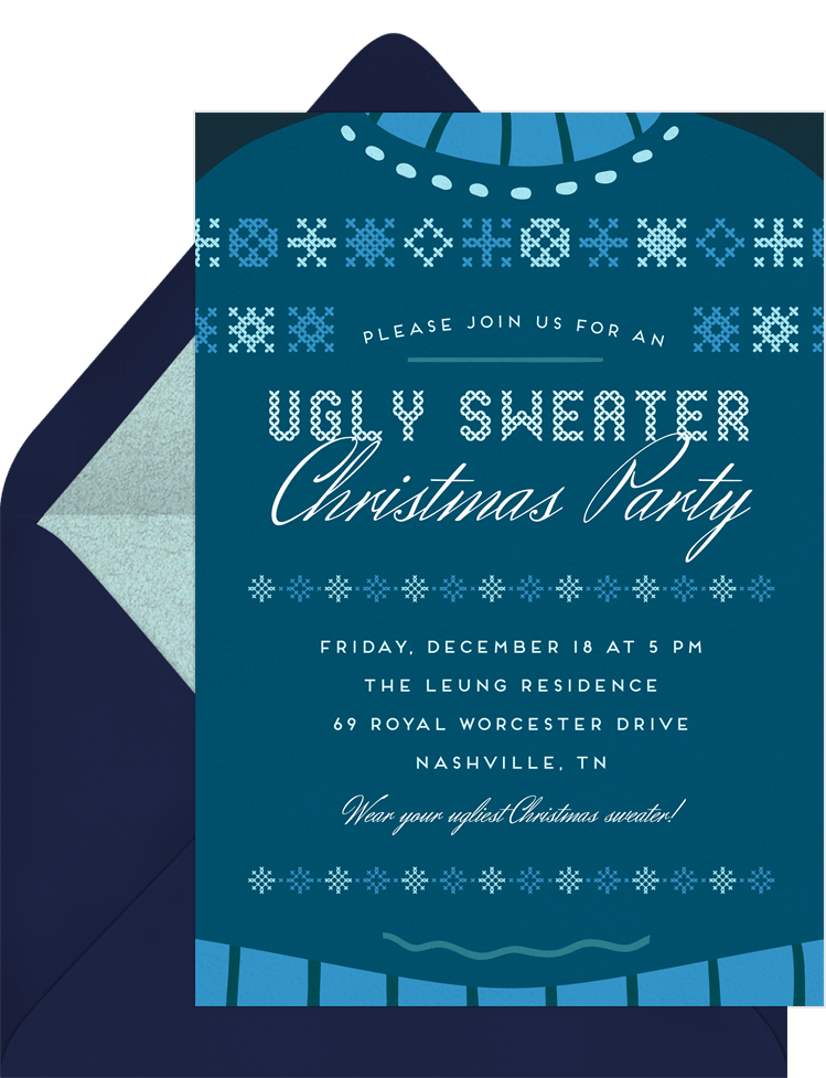 Aug 30, 2020 by brandon gaille. Ugly sweater christmas party invitations, christmas party invitation,tacky sweater party invite, festive holiday party, 20 fill in invitations and envelopes 4.7 out of 5 stars 17 $12.99 5 out of 5 stars. Personalize it with photos & text or purchase as is! It might get ugly tacky sweater holiday party custom invitation.